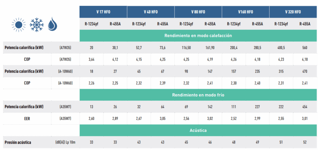 sobre el agua, lo que permite producir agua a hasta 75 °C con temperaturas exteriores extremas sin perder rendimiento.