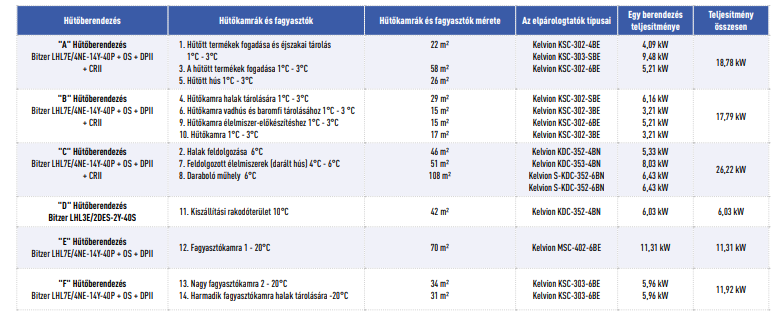 A végső választásnál a Vanpraet és a HEYTEC 4 Bitzer csoportaggregátot választott a 11 hűtőkamra ellátására, Solstice® yf (R-1234yf) hűtőközeggel.A 3 fagyasztót 2 Bitzer csoportaggregátra osztották, R-454C hűtőközeggel. Minden helyiségbe Kelvion elpárologtatókat szereltek be. A szigetelőpanelek felszerelését a partnercég, a Proleco végezte.