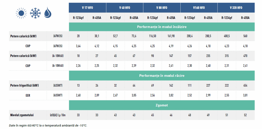 Pompe de căldură optimizate cu R-1234yf sau R-455A în funcție de puterea dorită și de debitul de apă preconizat